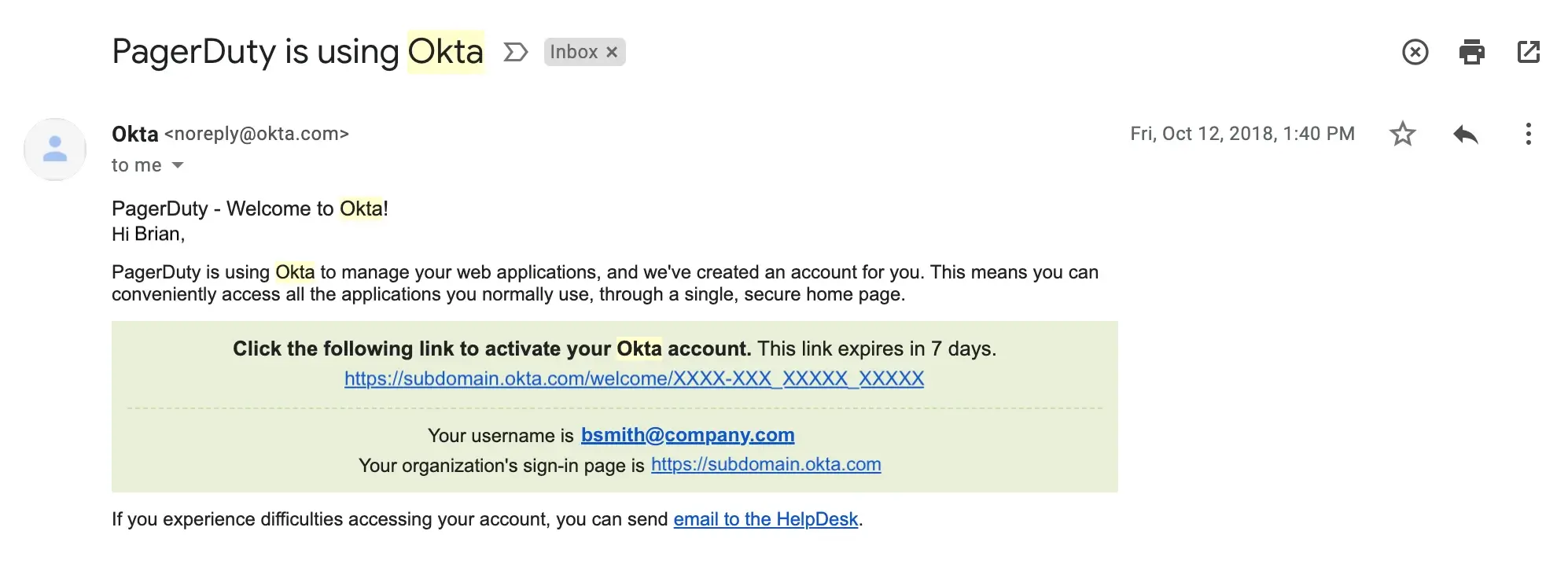 The following is an example from Okta, and the email will vary based on your identity provider: