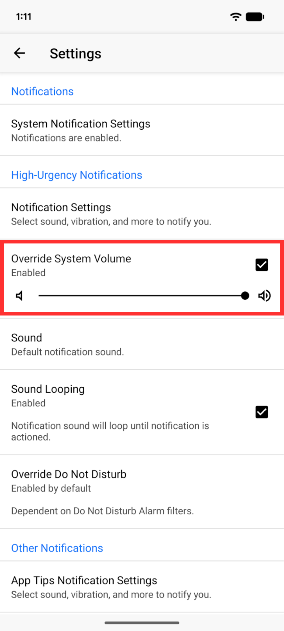 **OnePlus devices on Android 10 and higher do not support Override System Volume for the PagerDuty app.