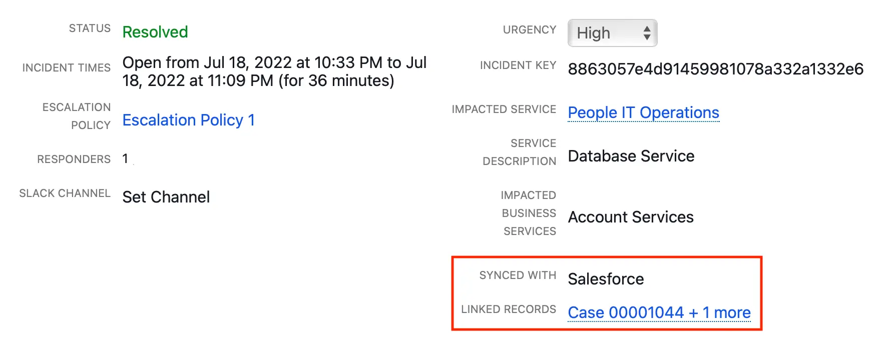 Note: You can view up to 10 linked Salesforce records on the PagerDuty incident's details page.