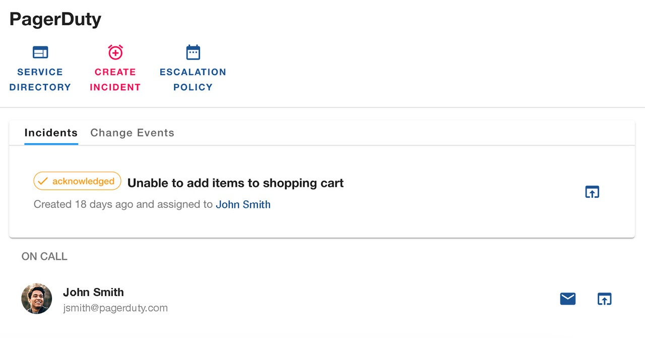 The code samples provided above reflect the default configuration of the PagerDutyCard entity. You have at your disposal some parameters that allow you to prevent users from creating incidents, or hide the change events tab or even hide the on-call section of the card.