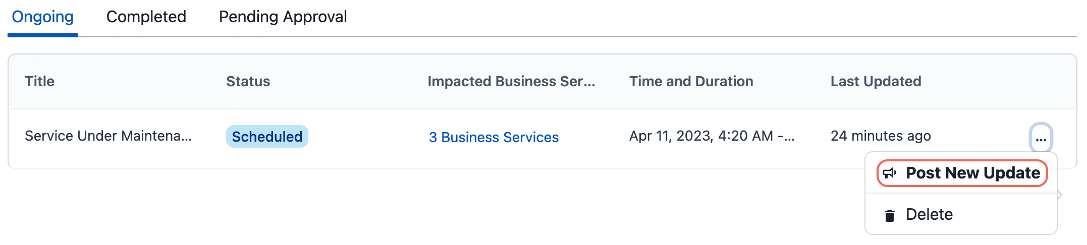 Navigate to StatusExternal Status Page select your preferred Status Page select Posts.