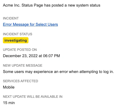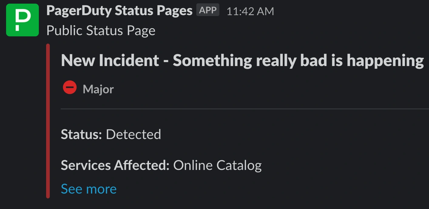 Now, whenever there is a post on the status page, you'll receive an update in Slack, too.