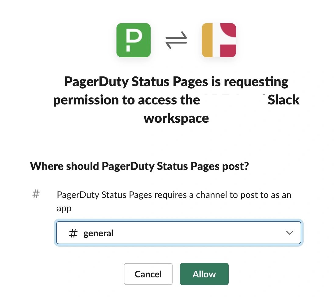 After successful installation, you will receive a Slack message in the connected channel: added an integration to this channel: PagerDuty Status Pages.