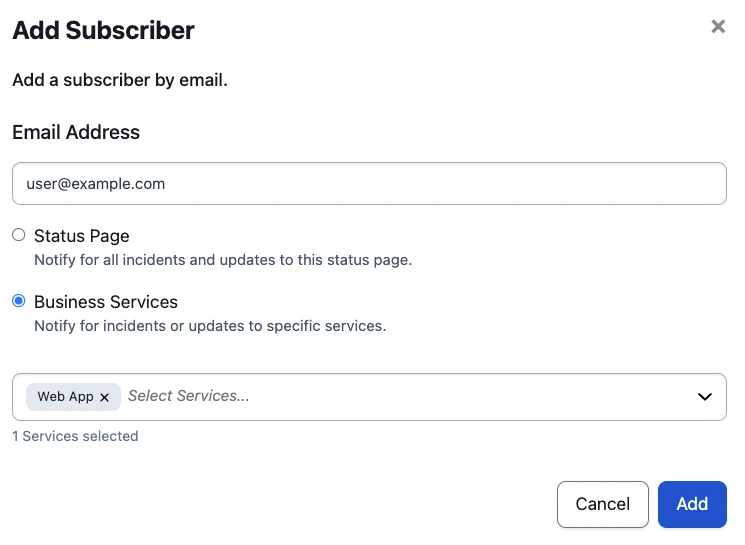 A subscriber is any user on the internet that has opted in to receive communications about incidents in your External Status Page.